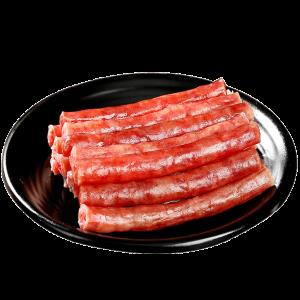 香腸選用上等豬肉,輔以辣椒、花椒、大蒜、鹽等調料,經過腌制、灌腸、風干等多道工序精心制作而成,成品香腸色澤紅亮,香氣四溢,口感鮮美,風味濃郁,令人回味無窮。