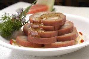 1. 色澤誘人:糯米藕色澤潔白,藕片切得均勻,層次分明。