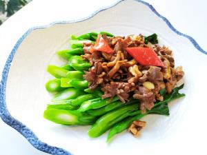 5. 出鍋裝盤:炒至菜心斷生,顏色鮮綠,即可出鍋裝盤,呈現(xiàn)出一道色香味俱全的佳肴。