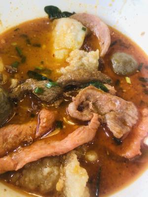 2、吸湯吃:將煮熟的食材撈出,放入碗中,加入麻辣燙湯底,吸食湯汁。