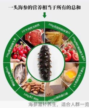 海參作為一種滋補養生佳品,適合多種人群食用,在日常生活中,適量食用海參,有助于提高身體素質、延緩衰老,需要注意的是,海參性溫,體質燥熱者應適量食用,如有疑問,請咨詢專業醫生。