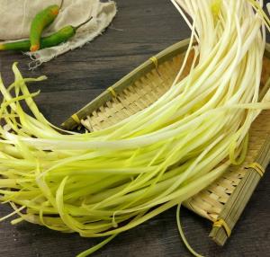 韭黃,亦稱黃韭、韭芽,是韭菜在特定生長條件下形成的幼嫩部分,在韭菜的生長過程中,人們會用黑布或塑料薄膜將其葉鞘覆蓋,使其在無光環境中生長,從而形成金黃色的葉鞘,韭黃含有豐富的營養成分,具有極高的食用價值。
